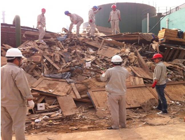 烈日炎炎,在公司總經(jīng)理喬樹華號召下,由健康安全環(huán)保部經(jīng)理孫長輝現(xiàn)場指揮,大家自行結(jié)隊,不畏辛苦,拆卸木箱、搬運木板、揀拾垃圾,將廢棄物重新規(guī)整,并對其進行分類,對能重新再利用的進行扎堆存放,對該遺棄的做集體堆放運出廠區(qū)。