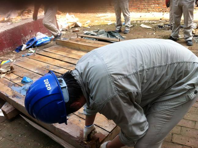 為盡快完成清理工作,大家不停地忙碌著,沒人在意汗水浸濕的衣服。在這一天,大家交流的不是抱怨、不是疲勞,而是因勞動交流產(chǎn)生的融合。