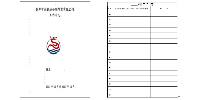 為了更好地推動工作,提高工作效率和員工的責(zé)任感,貸款公司開展了員工工作日志制度。使每位員工都能清楚自己今天做了哪些工作,哪些工作還沒有做,自己心里有一個(gè)工作算盤,如何合理安排時(shí)間,去有效落實(shí)工作,把工作干得更好,更出色。公司還規(guī)定每半月亮工作日志、談感悟。同時(shí)通過工作日志,也能具體掌握全體員工的工作概況,對工作中的得與失,起到很好的檢驗(yàn)和總結(jié)作用。