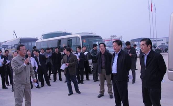 2013年10月31日,渤海新區(qū)黨工委書記丁繡峰一行蒞臨新啟元督導觀摩蒽油加氫項目建設,集團總經(jīng)理于國臣等領導在綜合樓前進行接待。