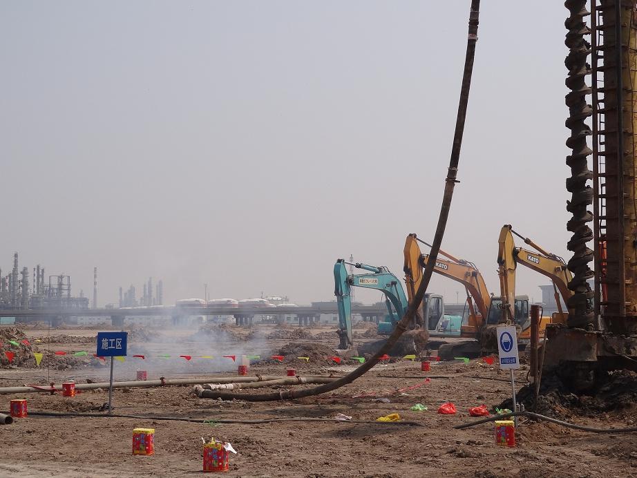 開工儀式在上午10:16分準(zhǔn)時(shí)開始,雷鳴般的鞭炮聲過后,打樁機(jī)開始鉆探灌注第一根樁基。新欣園公司碳四精細(xì)化工的樁基施工,標(biāo)志著我們新欣園的建設(shè)已經(jīng)正式開始,新欣園公司建成后,必定會(huì)成為渤海灣又一耀眼的新星!