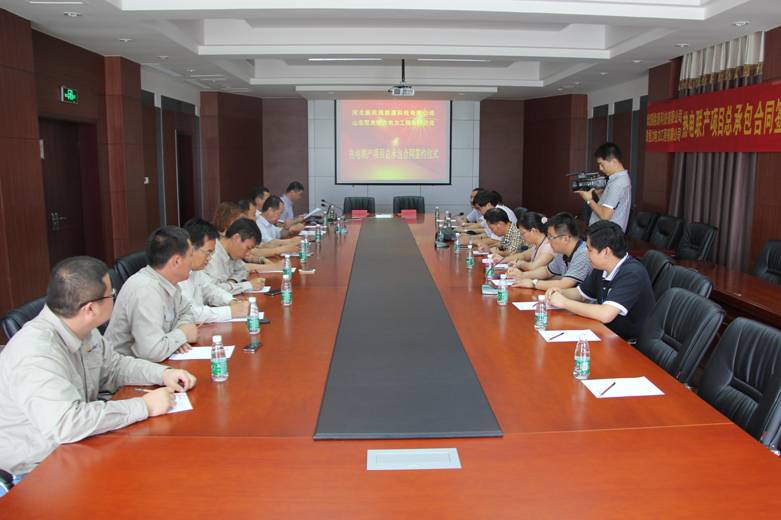 簽約儀式上,河北中捷石化集團有限公司總經(jīng)理于國臣與山東雙良恒力電力工程有限公司總經(jīng)理李樹平分別介紹了雙方公司的基本情況,同時表示了建立長久合作的良好愿望;河北新欣園能源科技有限公司董事長李志剛簡要介紹了熱電聯(lián)產(chǎn)項目基本情況,以及相關計劃、任務和指標等相關內(nèi)容;河北中捷石化集團有限公司董事長王振華就項目簽約做重要講話,對項目的可行性和發(fā)展前景予以充分的肯定。隨后,李志剛董事長與李樹平總經(jīng)理分別代表雙方企業(yè)正式簽訂了熱電聯(lián)產(chǎn)項目總承包合同。