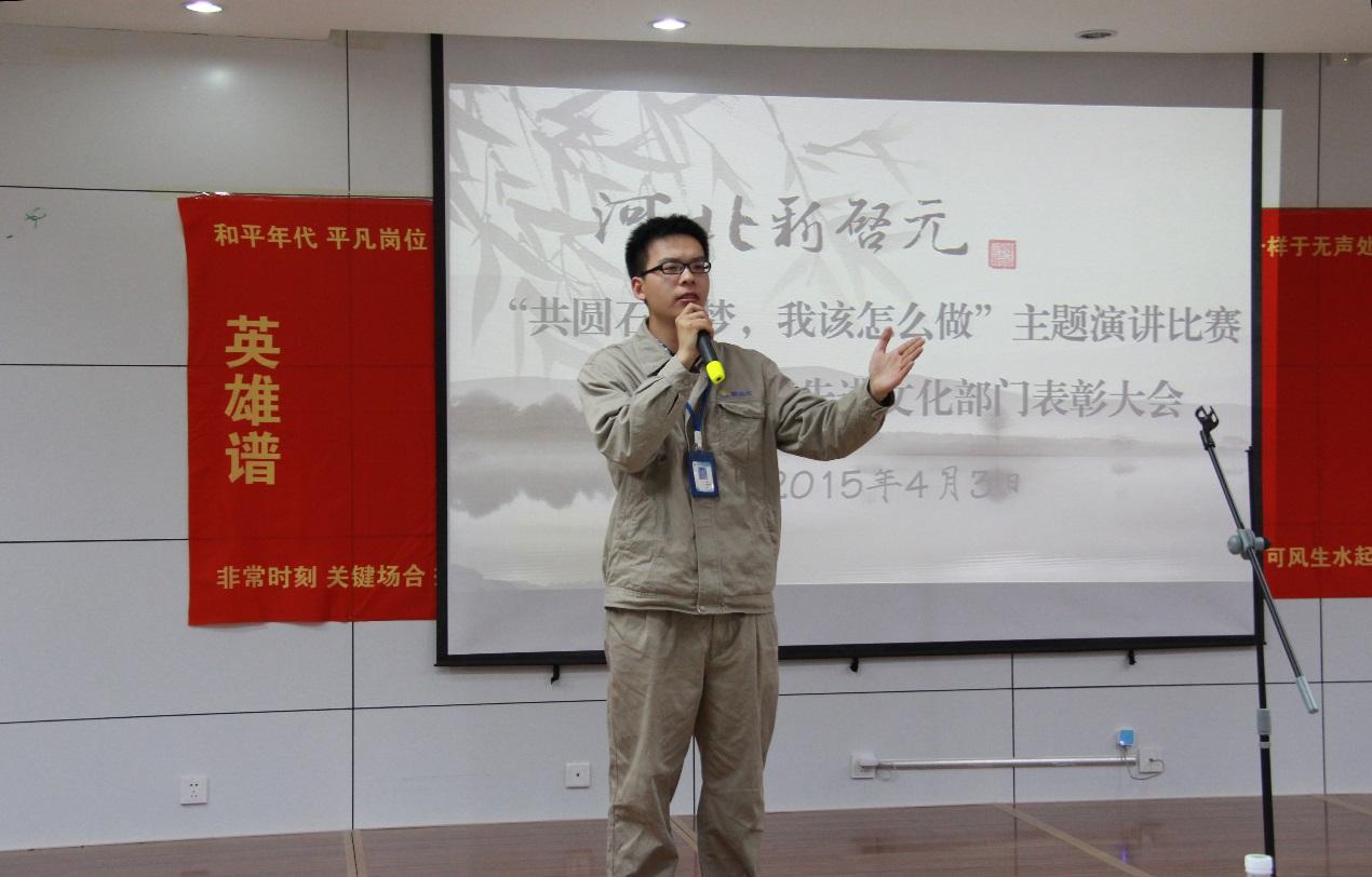 會議首先重溫了王振華董事長《集聚激情,亮出真情,體現(xiàn)親情,擎旗金羊之年再創(chuàng)發(fā)展新高》的講話錄像,使未能參加集團(tuán)工作會議的班組長們有幸聆聽了王總的諄諄教導(dǎo),堅定了實(shí)現(xiàn)石化夢的信心。隨后,演講比賽正式開始,從24名參賽選手中脫穎而出的12名優(yōu)秀選手,以“共圓石化夢,我該怎么做”為主題進(jìn)行演講,選手們深刻的理解和精彩的表現(xiàn)贏得觀眾們的陣陣掌聲。經(jīng)過激烈的角逐,運(yùn)行一部杜小磊最終摘得桂冠。