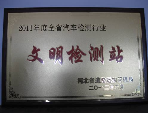近日,臨港華誠(chéng)必達(dá)汽車綜合性能檢測(cè)有限公司被河北省道路運(yùn)輸管理局授予2011年全省汽車檢測(cè)行業(yè)“文明檢測(cè)站”榮譽(yù)稱號(hào)。