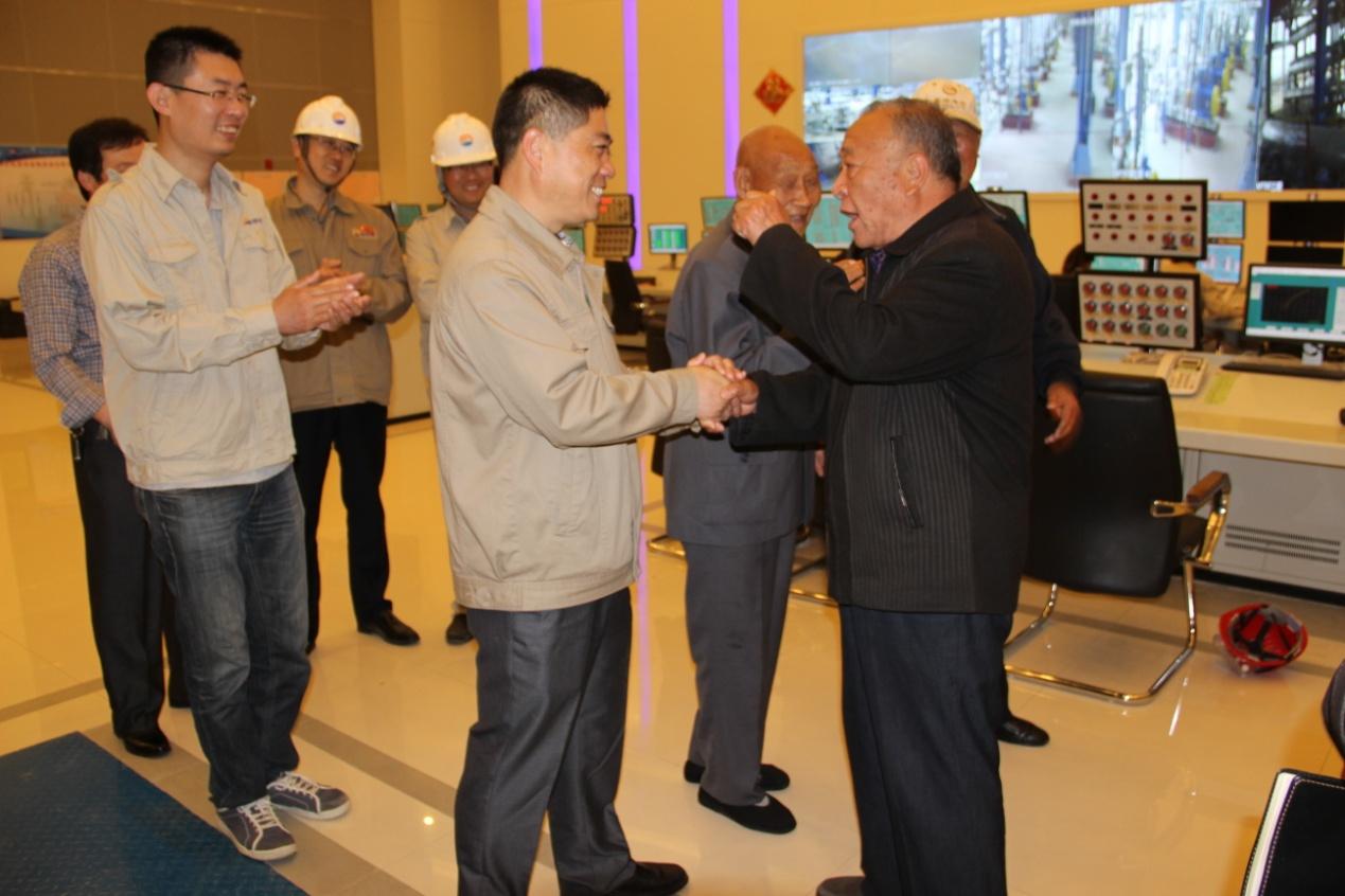 老干部們兩鬢斑白但步履矯健,在喬總的陪同下沿經(jīng)五路參觀了新欣園碳四精細(xì)化工一體化項(xiàng)目、熱電項(xiàng)目以及中控室。喬總沿途向老干部門介紹了公司的發(fā)展前景、采用的先進(jìn)技術(shù)以及裝置投產(chǎn)后的效益情況。