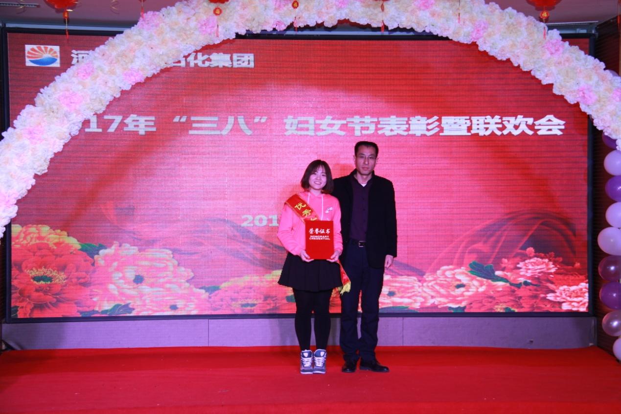 集團(tuán)工會(huì)主席趙愛華宣讀了河北中捷石化集團(tuán)2017年“三八”婦女節(jié)“先進(jìn)女職工”、“ 道德模范標(biāo)兵”、“ 優(yōu)秀女工組長”表彰決定,集團(tuán)公司黨委書記、副總經(jīng)理劉國新,工會(huì)主席趙愛華,紀(jì)委書記朱振江和新啟元公司工會(huì)主席劉立新為獲得表彰的17名先進(jìn)女工進(jìn)行了頒獎(jiǎng)。新啟元公司朱雪梅作為先進(jìn)代表進(jìn)行了獲獎(jiǎng)發(fā)言。
