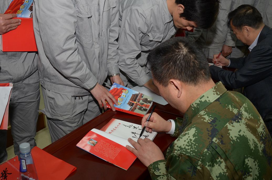 最后,大家移步科研樓六樓會(huì)議室,聽(tīng)取兩位老班長(zhǎng)進(jìn)行國(guó)旗報(bào)告。老班長(zhǎng)結(jié)合自身經(jīng)歷和感受,深情地講述了五星紅旗的故事,用樸實(shí)無(wú)華而又催人奮進(jìn)的語(yǔ)言表達(dá)了對(duì)國(guó)家和國(guó)旗的熱愛(ài)。董立敢班長(zhǎng)更是播放了許多有關(guān)國(guó)旗的珍貴視頻,講述了多個(gè)普通百姓與國(guó)旗的感人事跡,情到深處熱淚盈眶。演講結(jié)束后,大家依次在董立敢班長(zhǎng)帶來(lái)的國(guó)旗上進(jìn)行簽名,表達(dá)我們的愛(ài)國(guó)之情,同時(shí),董班長(zhǎng)也為伙伴們?cè)谄鋵V秶?guó)旗之戀》一書(shū)上簽字留念。