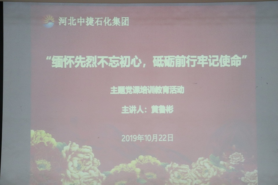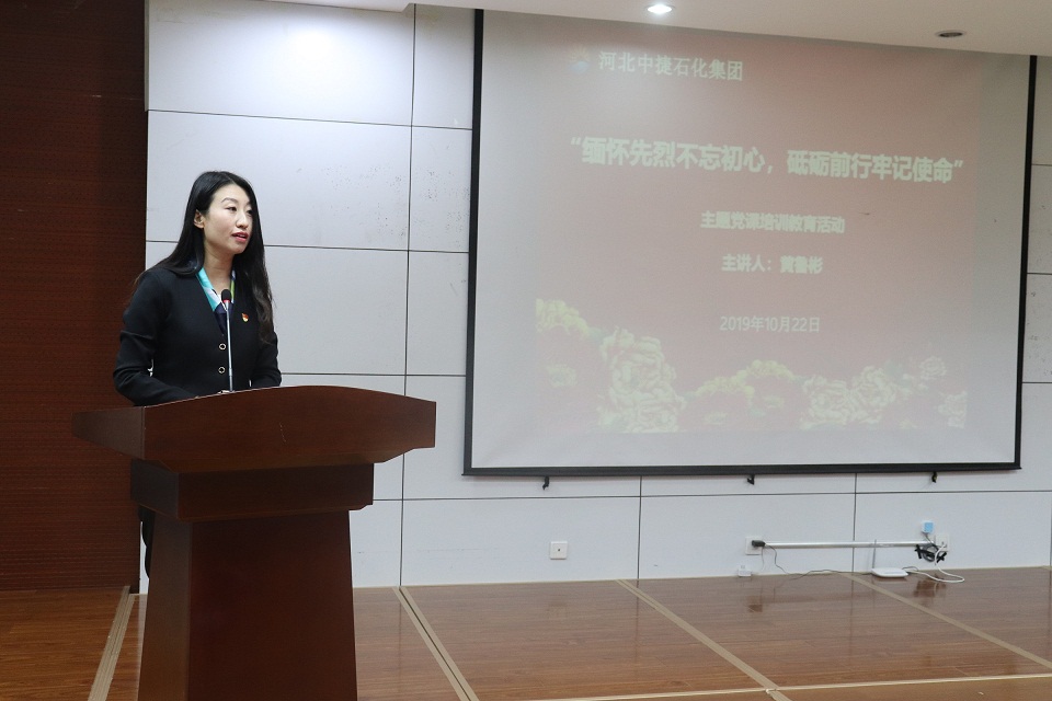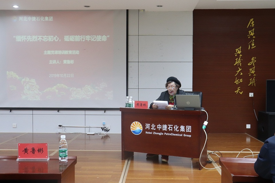 為緬懷革命先烈功績(jī),弘揚(yáng)革命傳統(tǒng)精神,激發(fā)廣大黨員干部愛(ài)國(guó)主義、集體主義精神和社會(huì)主義道德情操風(fēng)尚,培育和踐行社會(huì)主義核心價(jià)值觀(guān),增強(qiáng)廣大黨員干部干事創(chuàng)業(yè)的向心力和凝聚力,10月22日,集團(tuán)黨委在科研樓六樓會(huì)議室組織開(kāi)展2019年“緬懷先烈不忘初心,砥礪前行牢記使命” 主題黨課培訓(xùn)教育活動(dòng),特邀抗戰(zhàn)英雄黃驊之女黃魯彬女士為大家授課,集團(tuán)公司總經(jīng)理喬樹(shù)華,黨委副書(shū)記朱振江、黨支部委員,黨建共建單位中海石油中捷石化有限公司黨員代表、集團(tuán)各單位黨支部書(shū)記、工會(huì)主席、黨員代表、黨務(wù)工作者共計(jì)70余人參加活動(dòng),中捷產(chǎn)業(yè)園區(qū)黨群工作部孟輝部長(zhǎng)、組宣部黨員代表出席了本次活動(dòng)。