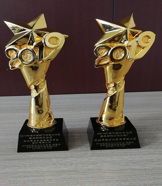 會(huì)議上,河北中捷石化集團(tuán)有限公司榮獲“2019年度中國(guó)北方大區(qū)最具影響力地方煉廠”稱號(hào)、河北新啟元能源技術(shù)開(kāi)發(fā)股份有限公司斬獲“2019年度中國(guó)燃?xì)馍罴庸ば袠I(yè)最具影響力企業(yè)”稱號(hào)。