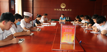 華悅凱旋酒店訊(通訊員 魏歆凝)7月27日上午,華悅凱旋大酒店主管以上管理人員對煙臺會議集團(tuán)董事長重要講話《危機(jī)育新機(jī) 變局開新局》和總經(jīng)理工作報告《拼勇氣 搶財氣 闖志氣》進(jìn)行學(xué)習(xí)貫徹。在學(xué)習(xí)中理解,在探討交流中提高,真正將學(xué)習(xí)會議精神落到實處。