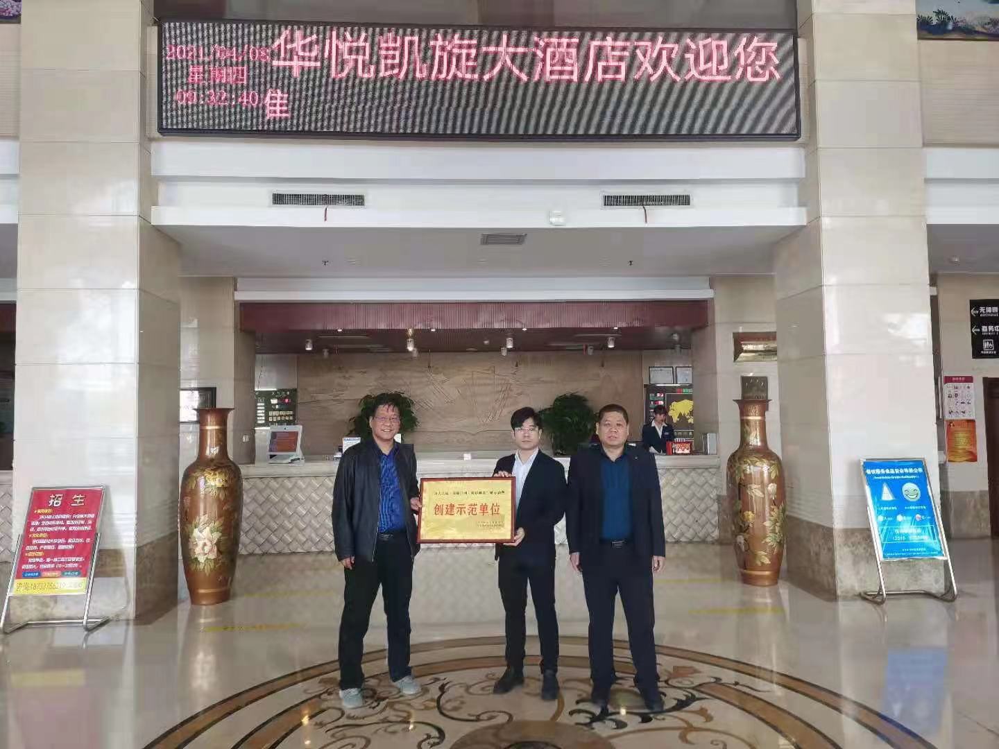 華悅凱旋大酒店訊(通訊員  朱衛(wèi)華)近日,由滄州市市場監(jiān)督管理局協(xié)同滄州市消費(fèi)者權(quán)益保護(hù)中心聯(lián)合授予華悅凱旋大酒店“好人之城·美麗滄州·誠信商家”放心消費(fèi)“創(chuàng)建示范單位”稱號(hào),并予以授牌。
