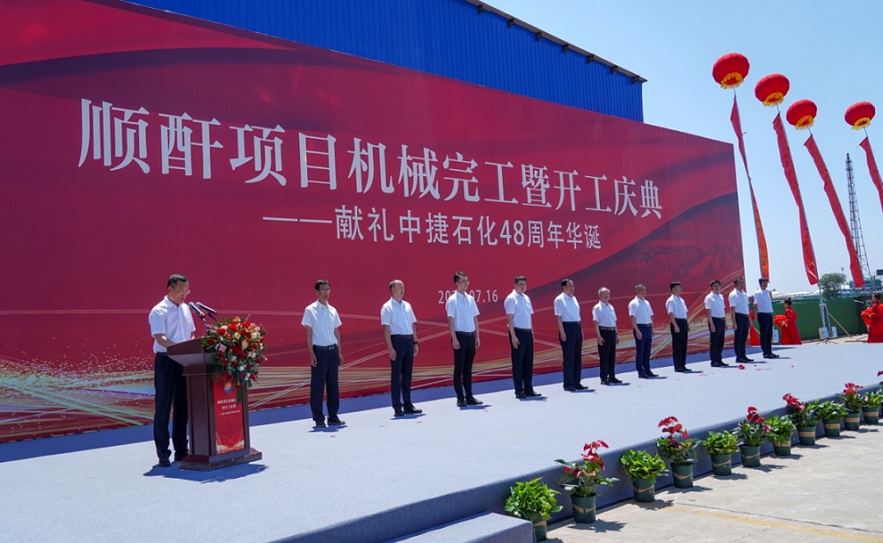 新啟元公司訊 7月16日,晴空萬(wàn)里,風(fēng)清散暑,順酐項(xiàng)目現(xiàn)場(chǎng)彩旗飄揚(yáng),伙伴們精神抖擻。新啟元公司“獻(xiàn)禮中捷石化48周年華誕——7月16日順酐項(xiàng)目機(jī)械完工暨開(kāi)工慶典”盛裝登場(chǎng)。中捷產(chǎn)業(yè)園區(qū)黨組書(shū)記、管委會(huì)主任孫西讓,河北中捷石化集團(tuán)董事長(zhǎng)王振華,園區(qū)領(lǐng)導(dǎo)孫麟賀,石化辦主任劉峰,河北中捷石化集團(tuán)總經(jīng)理喬樹(shù)華,集團(tuán)領(lǐng)導(dǎo)張鵬、王猛、劉海軍、李金馬,新啟元公司董事長(zhǎng)李志剛、總經(jīng)理劉華冰參加慶典活動(dòng)。河北中捷石化集團(tuán)黨委書(shū)記于國(guó)臣主持盛典。