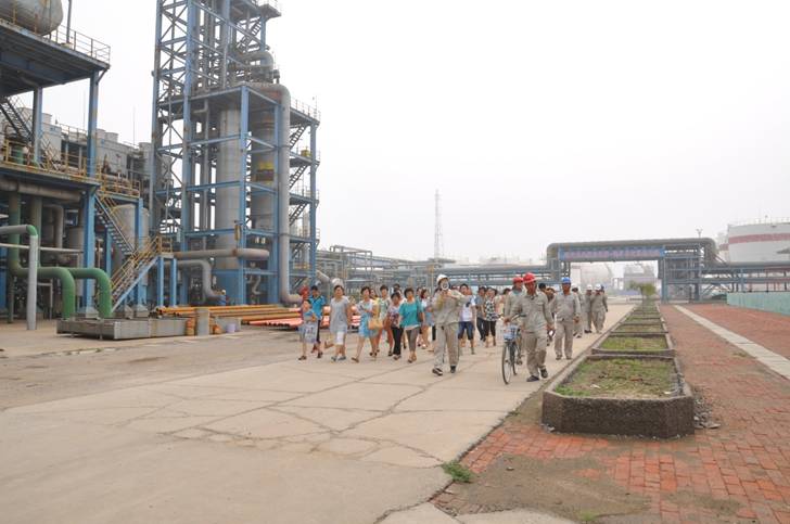 2013年8月4日是公司各級(jí)管理人員家屬走進(jìn)新啟元的日子,上午10:00員工家屬在綜合管理部人員的陪同下來(lái)到新啟元,與公司領(lǐng)導(dǎo)共同見(jiàn)證了蒽油反應(yīng)器吊裝的過(guò)程,并由各部室負(fù)責(zé)人陪同員工家屬繞廠區(qū)參觀,對(duì)各裝置情況作了了解。