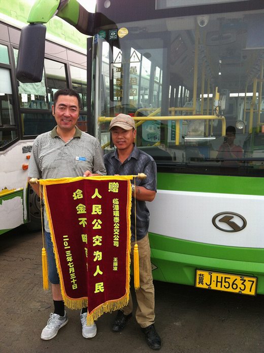 李先生當時就很激動,立即拿出錢來感謝駕駛員王振波,王師傅說啥也不收,他說這是公交駕駛員起碼的職業(yè)道德。在8月5日早上,李先生又特地來到公司,將一面印有“人民公交為人民,拾金不昧百姓夸”的錦旗送到駕駛員王振波師傅的手里。